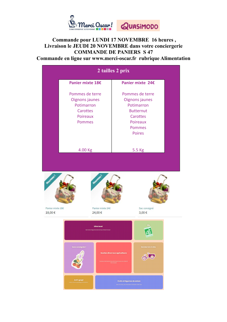 Paniers de fruits et légumes Quasimodo