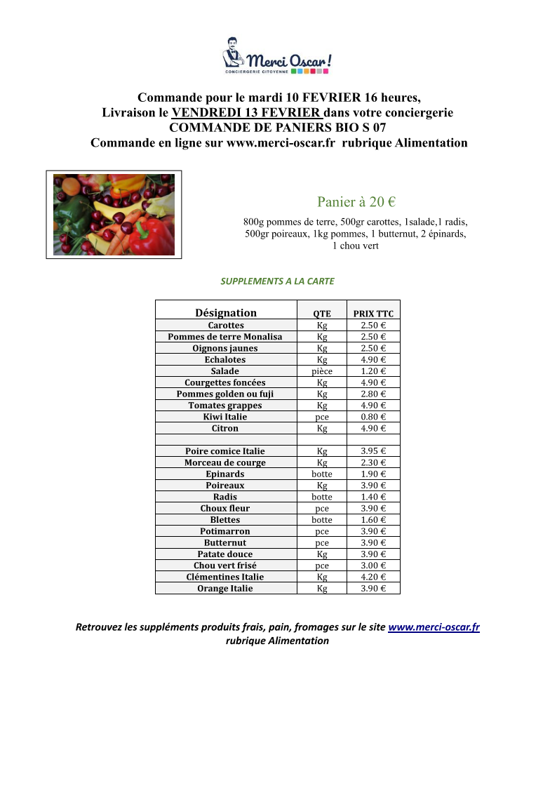 COMMANDE LE MARDI 10 FEVRIER 17H, livraison VENDREDI 13 FEVRIER